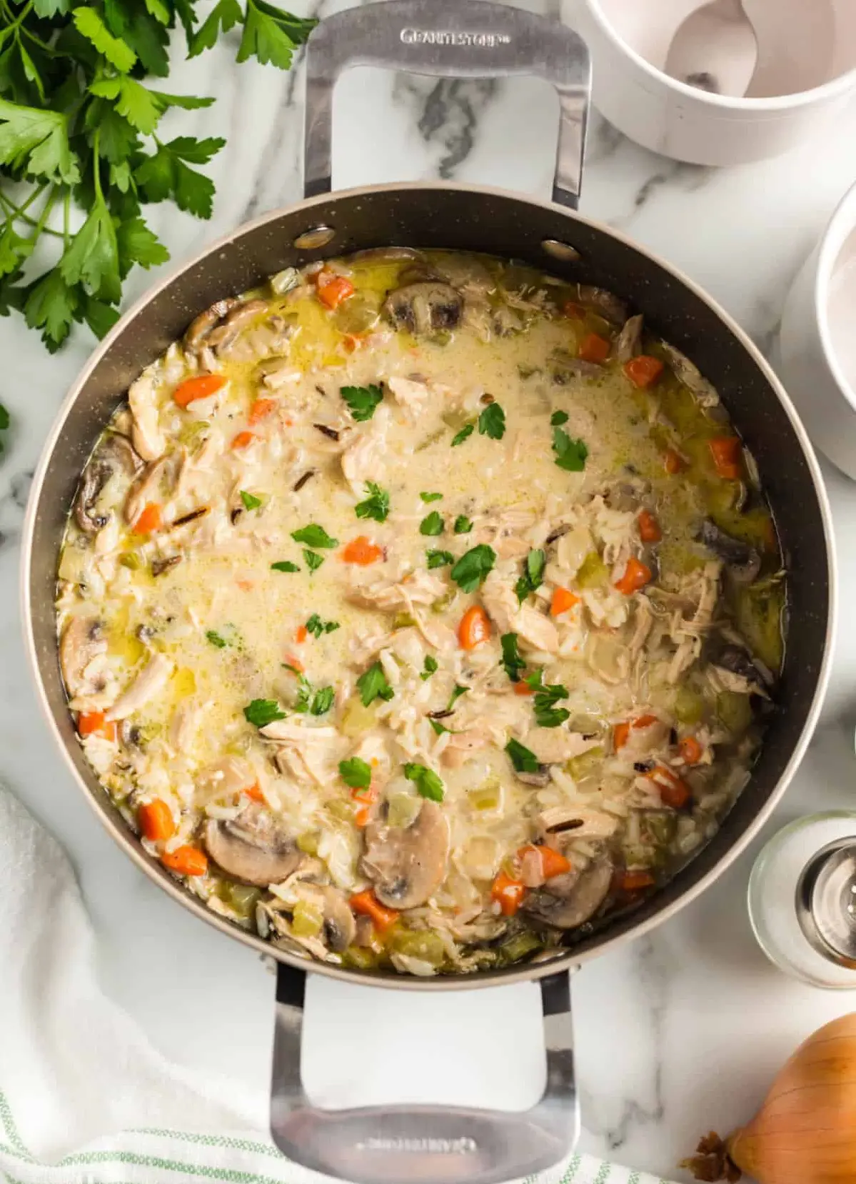 WILD RICE: Unlike white rice, wild rice has a natural smoky flavor. It’s technically not even rice at all — it’s a seed! I use a long grain and wild rice mix for this creamy chicken and wild rice soup to get the best of both worlds.