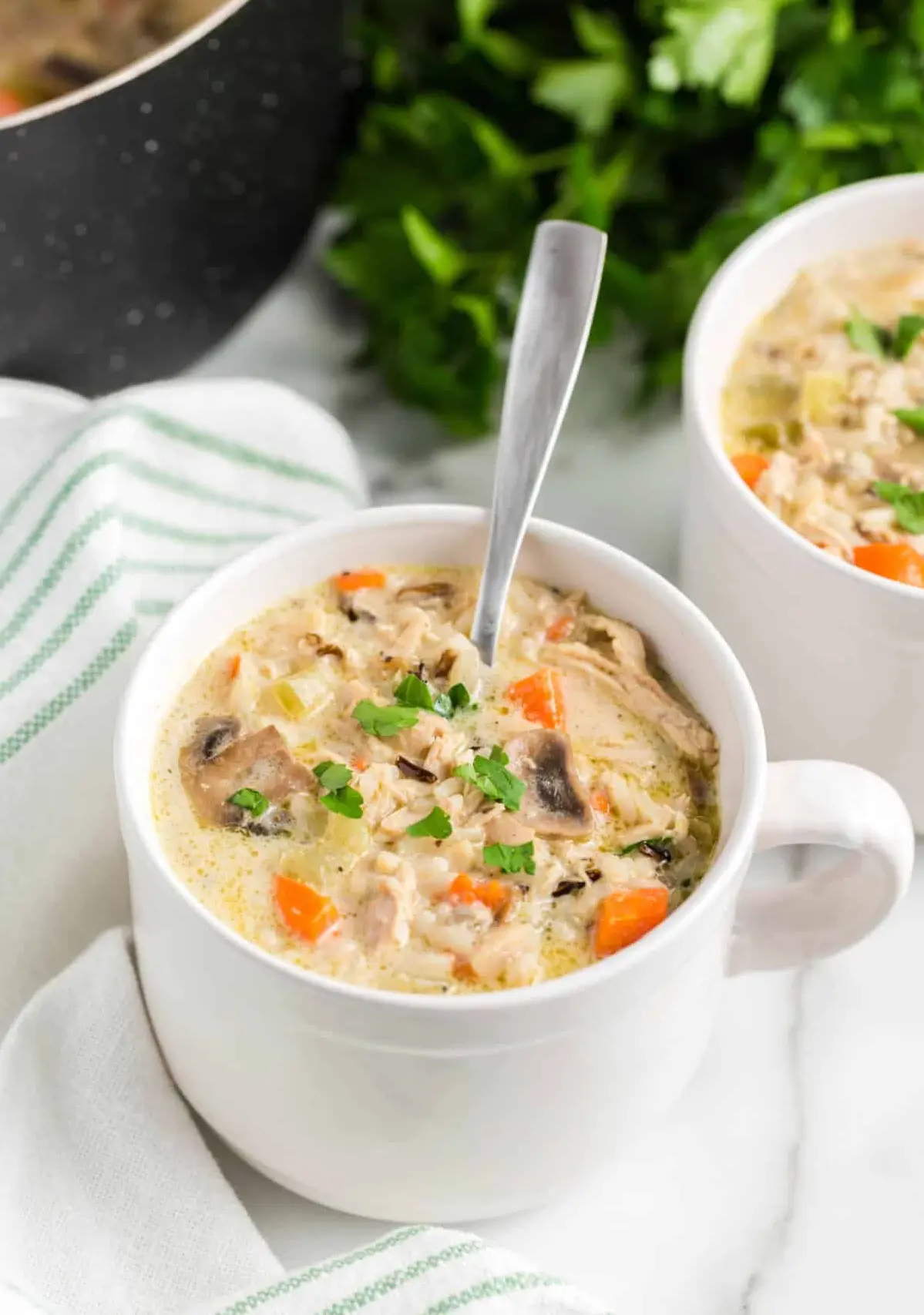 This is the best chicken and wild rice soup because it’s so easy! Cooking the rice in the soup gives it such a great savory flavor and saves on clean-up after dinner, too.