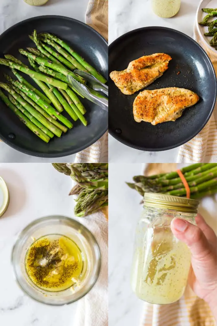 - To mix the salad, place some lettuce and a small drizzle of dressing in a bowl and toss. Then top the salad with cherry tomatoes, asparagus, avocado, and honey mustard chicken. Sprinkle with bacon and drizzle the remaining dressing over your salad.