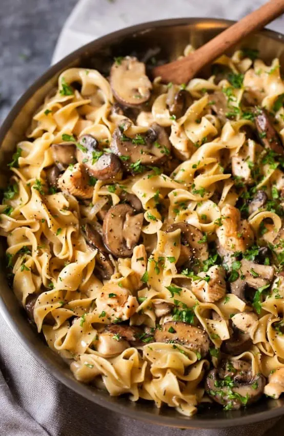 You guys. I hit the mother load with this dish. All those classic stroganoff flavors, with lean chicken breast, made in one pan, and ready in just 30 minutes! I love dishes like this… they’re so perfect for a busy weeknight! But you know, this dish is tasty enough, you could easily serve it to extended family for a Sunday dinner as well. With school back in session (or will be shortly), I don’t know about you, but I’m definitely short on time these days. Standing in the kitchen for an hour or more is just NOT going to happen on a weekday, but I still want to serve my family a wholesome, home-cooked meal.
